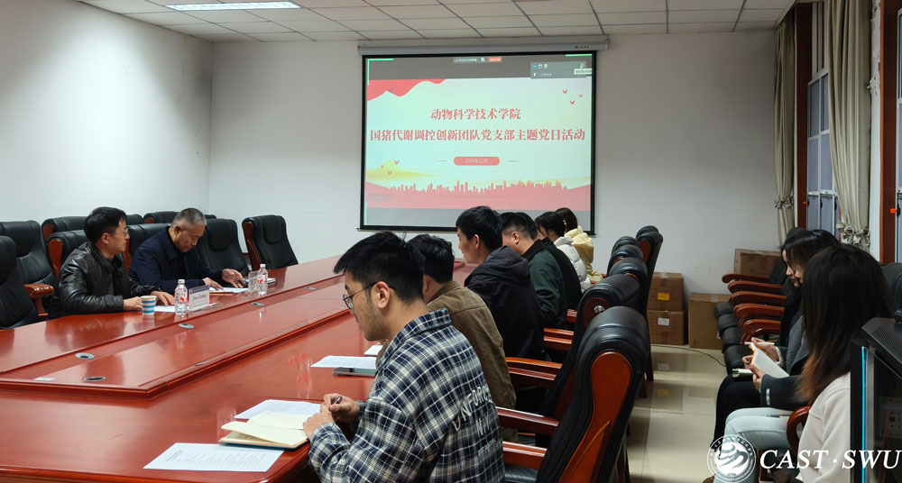 12月19日下午,学院国猪代谢调控创新团队党支部开展“青春铸魂强信念 挺膺担当建新功”主题党日活动。学校党委常委、副校长葛信勇莅会指导,学院党委书记赵智华、支部全体党员参加会议。会议由党支部副书记白广栋主持。