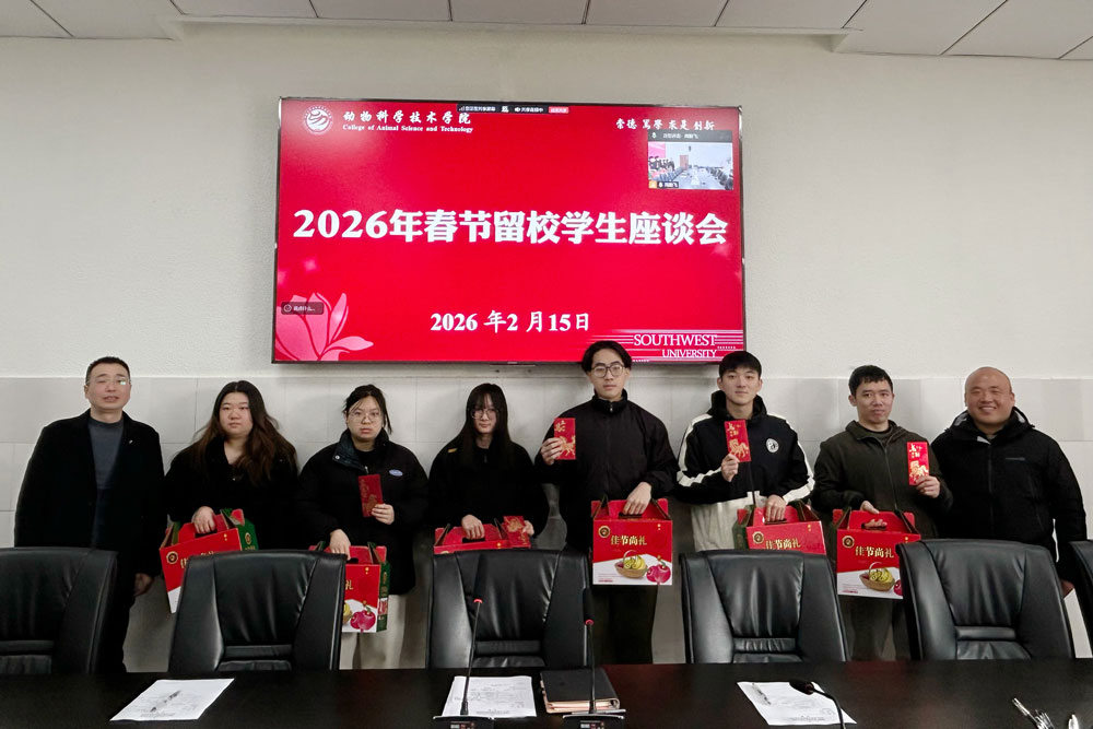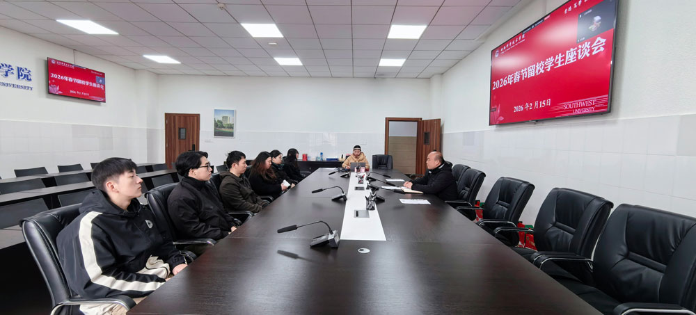 2月15日上午,学院在荣昌校区2教2404会议室通过线上、线下结合形式举行了2026年春节留校学生慰问座谈会。学院党委副书记张周飞,办公室主任周勤飞,本科生辅导员彭香出席座谈会,学院春节留校研究生和本科生参加座谈会。会议由彭香主持。
