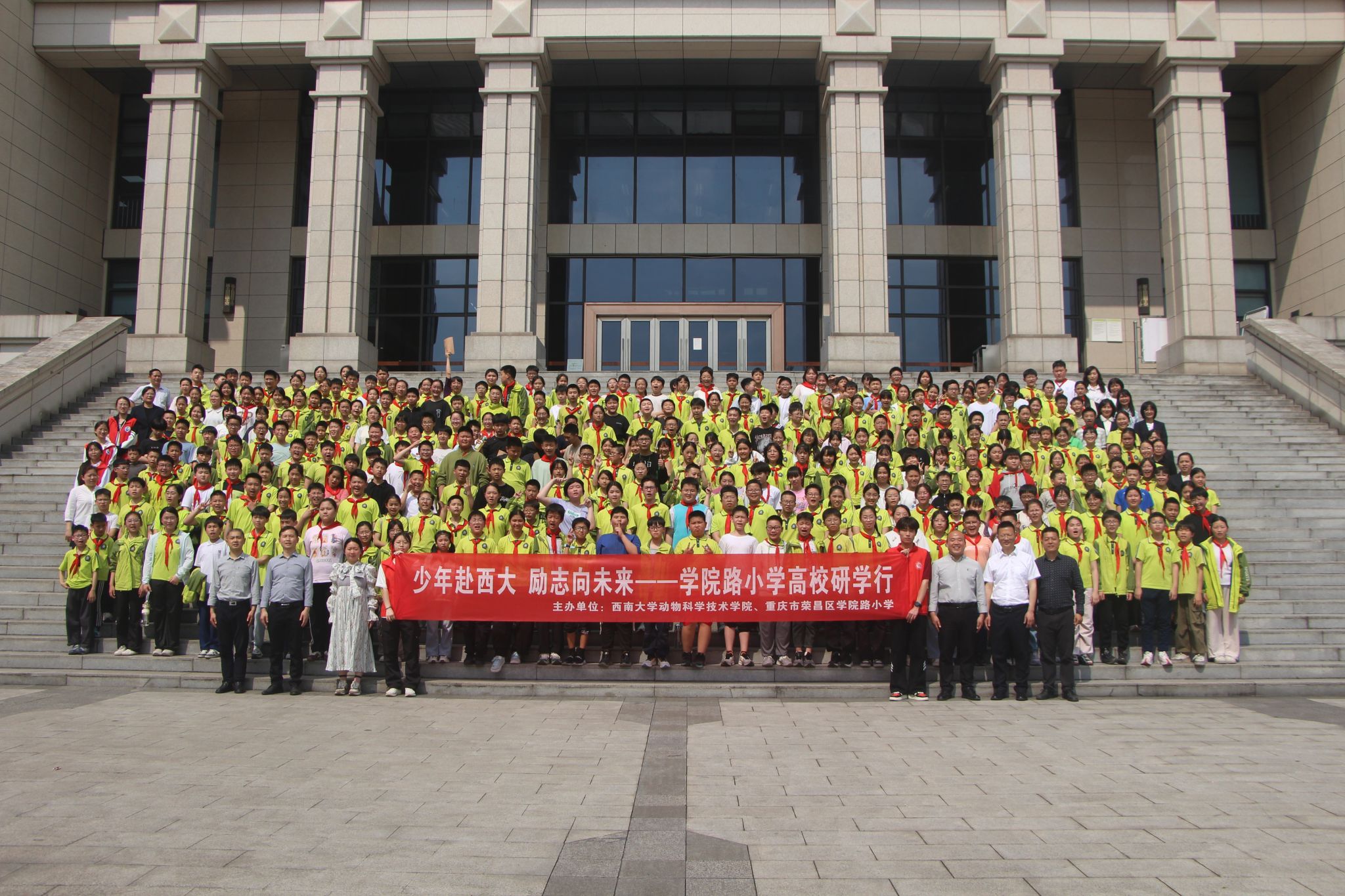 4月10日下午,学院与重庆市荣昌区学院路小学联合举办“少年赴西大 励志向未来”高校研学行活动。学院路小学党委书记、校长陈绍宏,党委副书记刘扬奎,副校长贺学进、李南,动物科学技术学院党委副书记张周飞,团委书记兼学生工作办公室主任孙海军,辅导员朱恒宇,以及学院路小学六年级300余名师生参与活动。